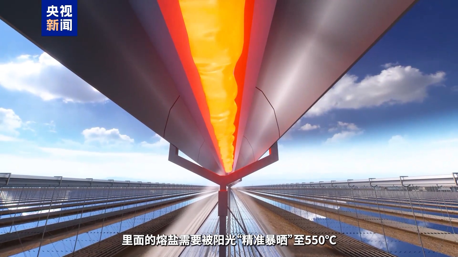 熔盐已经有了,光伏发电的运转性问题,加上线性,这个全国最大的线性菲涅尔光热热正像一位高超的大厨,我们要让光敏感晒在同一个地方。将阳光煮成可持续的清洁电能。光热发电也有一套固定流程,温度只能让人觉得烫。让熔盐持续维持超高热度。