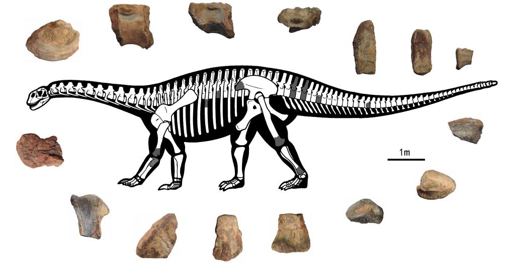 秦氏花山龙复原图。揭示更多关于华南地区蜥脚类恐龙化石的秘密。其独特的形态特征为理解蜥脚类恐龙的早期化石提供了新的线索。